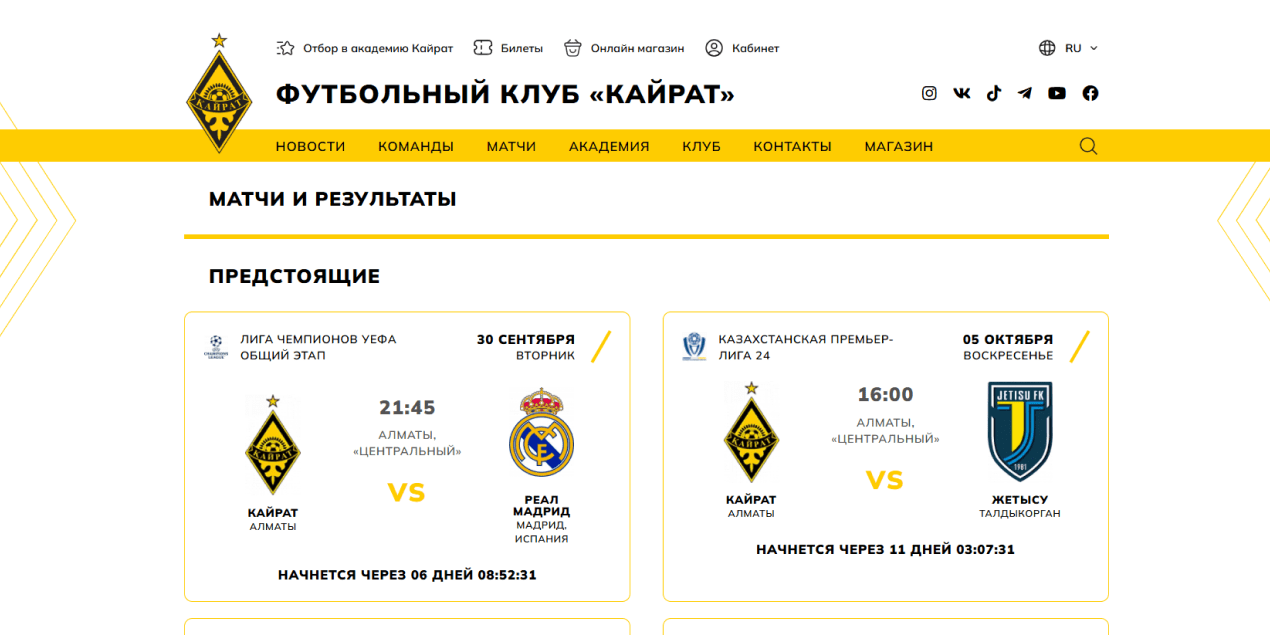 Официальный сайт ФК «Кайрат» – главный источник продаж.