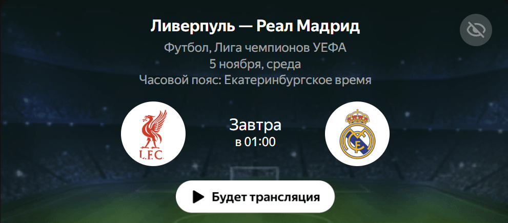 Кинопоиск предлагает трансляцию матча «Ливерпуль» — «Реал Мадрид» в HD и 4K качестве с расширенными функциями: