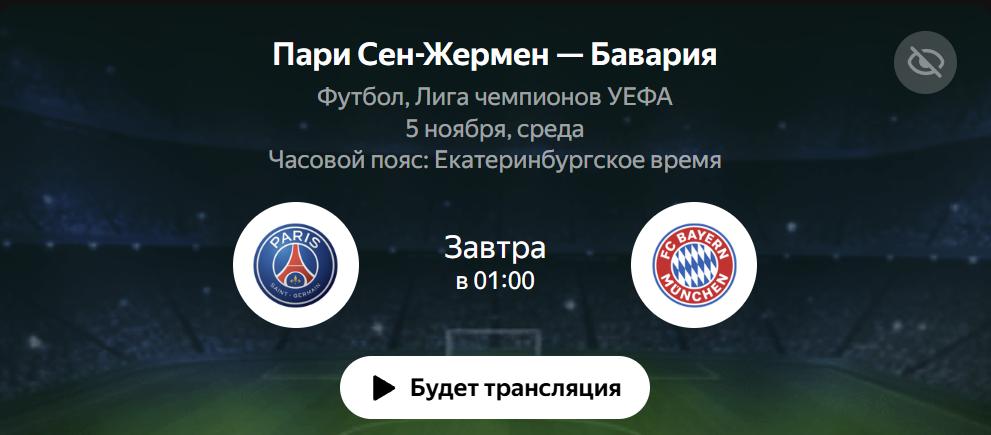Чтобы не пропустить прямой эфир «ПСЖ» — «Бавария»: